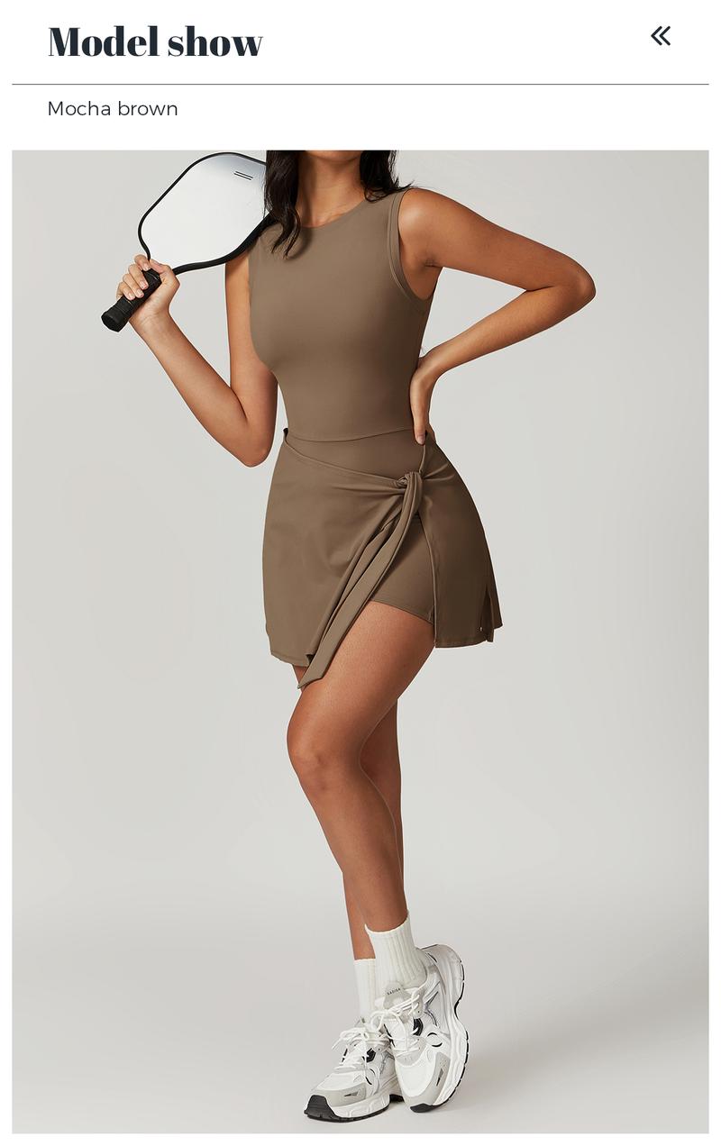 One-piece Dress + Shorts: It has built-in shorts to cover the thighs and bring comfort, while also having a dress-like overlay to create an elegant feminine shape. It is suitable for those who pursue "effortless fashion style" and can easily switch from gym to street.